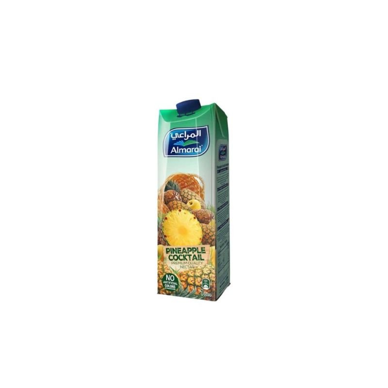 ALMARAI SOK Z OKUSOM ANANAS 1000ML Ananasov koktajl nektar iz koncentrata – sok vsebnost: najmanj 40 %- Sestavine: Voda, ananasov sok iz koncentrata, sladkor, jabolčni sok iz koncentrata, regulator kislosti (citronska kislina, E330), stabilizator (pekt