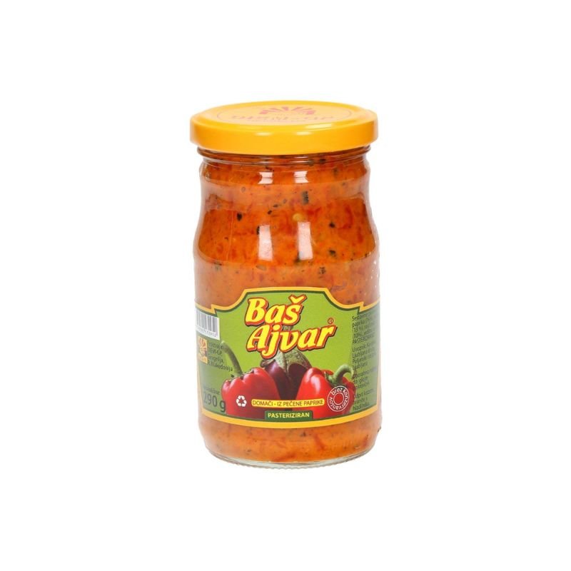 BAŠ AJVAR PEKOČI 290G Sestavine: pečena rdeča paprika, jajčevec, olje, sol in pekoče paprike. Neto
