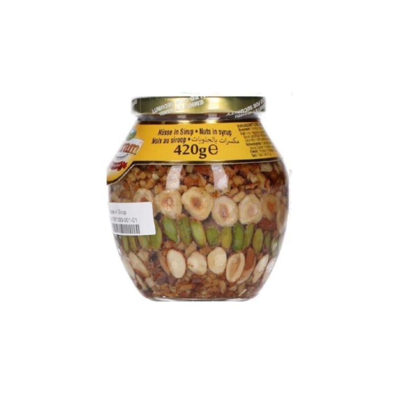 BURAM OREŠČKI V SIRUPU 420G Oreščki v medu – Sestavine: %35 ARAŠIDI, %33 glukozni sirup, melasa, %