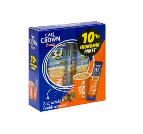 CAFE CROWN 3IN1 LEŠNIK 10X18G KAVA Z OKUSOM LEŠNIKA IN SLADKORJEM INSTANT KAVNA MEŠANICA Z BELILO