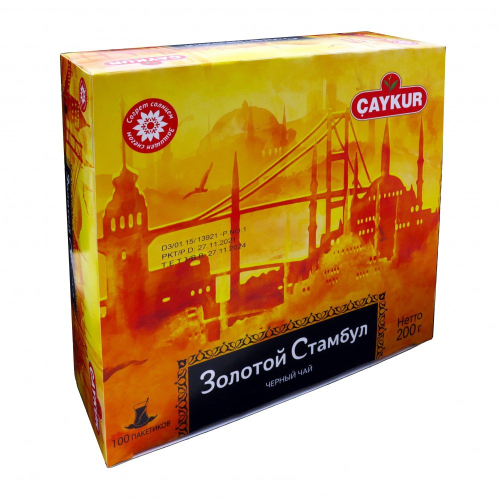 Neto: 200g Sestavine: Črni čaj. Dodajte eno čajno vrečko Çaykur za eno skodelica. Najpomembnejša značilnost, po kateri se čaj, pridelan v Turčiji, razlikuje od čajev v drugih delih sveta, je, da je pozimi pod snegom. Sneg zagotavlja naravno zaščito čaja. Povprečna hranilna vrednost na 100g: Energijska vrednost 4 KJ/ 1 kcal; Maščobe 0g; od tega nasičene maščobe 0g; Ogljikovi hidrati 0,20g; od tega sladkorji 0,13g; Beljakovine 0g; Sol 0g.