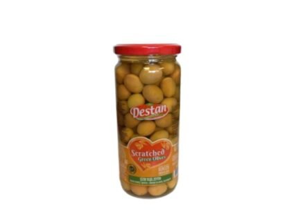 DESTAN ZELENE OLIVE (cizik) 600G Neto: 900g PASTERIZIRANE ZELENE OLIVE S KOŠČICO V SLANICI Sestavine: Zelene olive s koščico, vodna sol, regulator kislosti: E330, E270; antioksidant: E300; Ojačevalnik: E509; Konzervans: E202. Shranite v hladnem in suhe