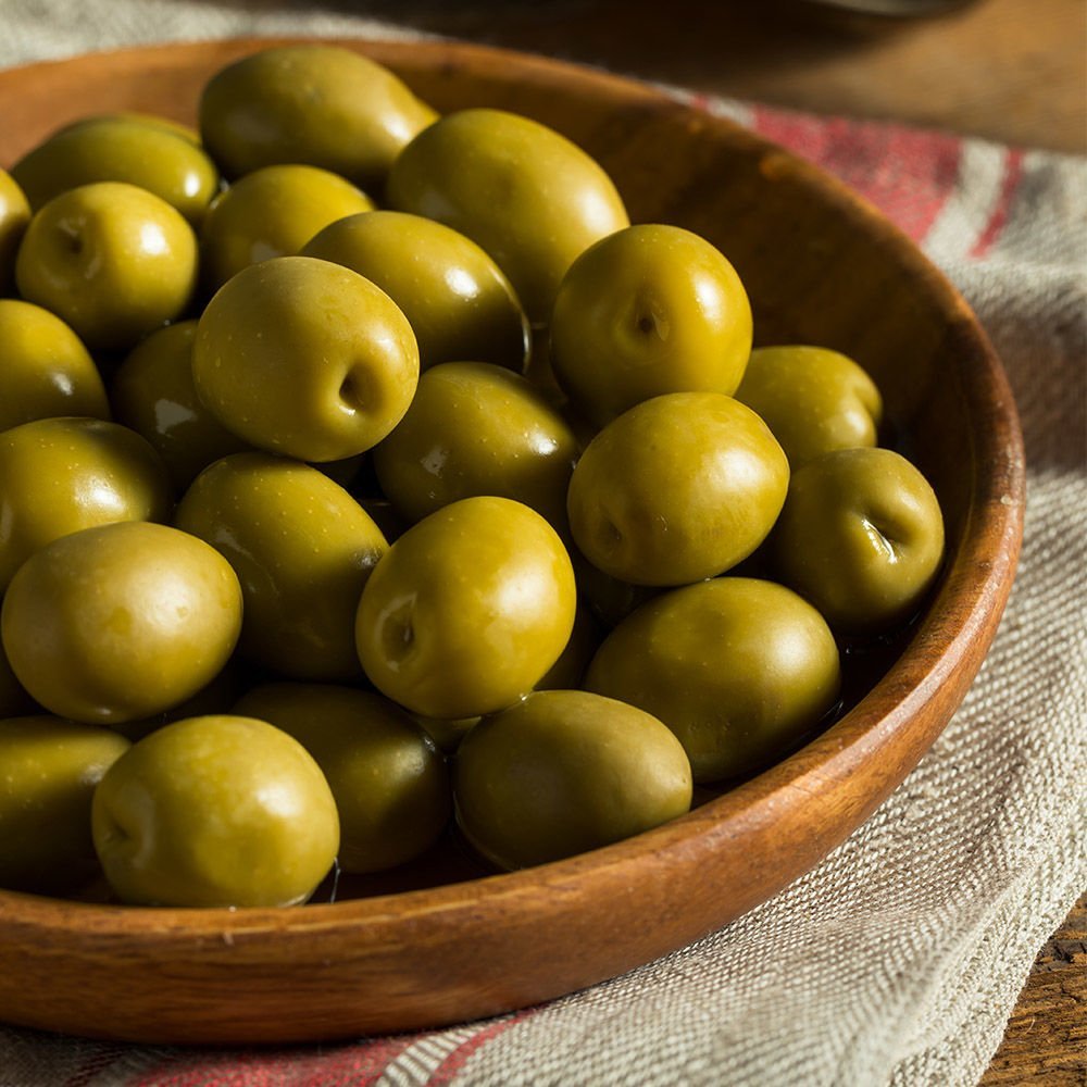 DESTAN KOKTEYL ZELENE OLIVE 900G Neto plod: 900g PASTERIZIRANE ZELENE OLIVE S KOŠČICO V SLANICI – S
