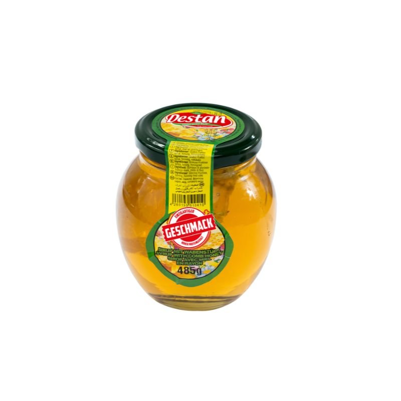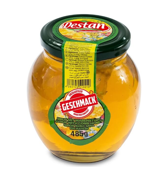 DESTAN TEKOČI SATNI MED 485G Sestavine: Glukozno-fruktozni sirup, satni med (%10). Uporabno do: gl