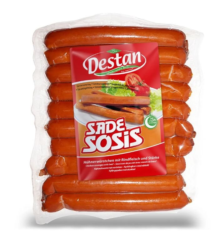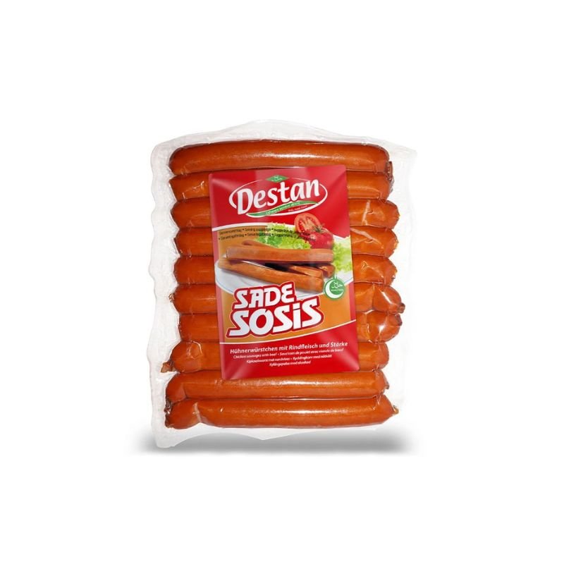 DESTAN PIŠČANČJE HRENOVKE 400G Piščančje hrenovke – Sestavine: 57% strojno ločenega piščanca, voda