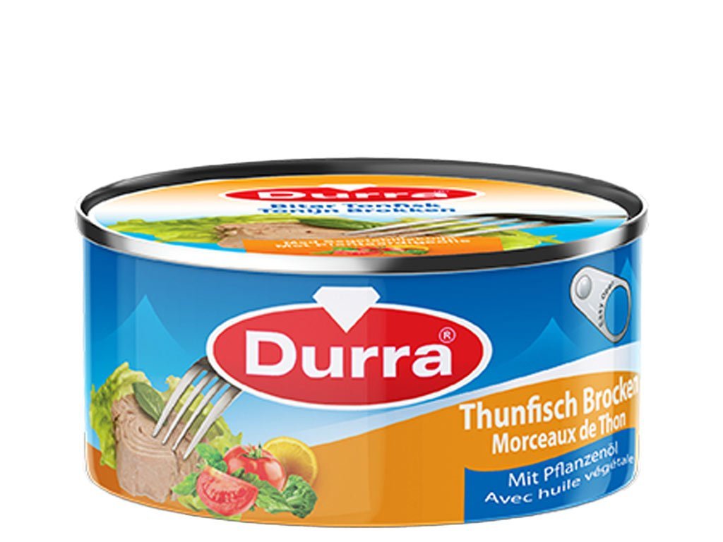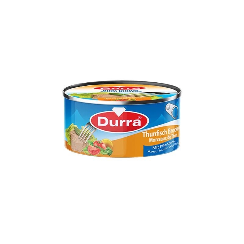 DURRA TUNA V PLOČEVINKI 160G TUNA V PLOČEVINKI Sestavine: Tuna 70% (SOJINO olje, voda, sol) (30%)