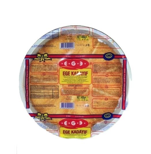 EGE KADAYIF (OKROGLA) 400G Sestavine: PŠENIČNA moka, voda. Priprava: Zmešajte 500g sladkorja, 500ml