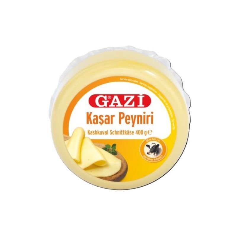 GAZI KASHKAVAL SIR 400G Maščoba poltrdega sira v suhi snovi: 45% – Sestavine: pasterizirano kravje