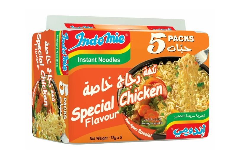 INDOMIE NOODLE SPECIAL PIŠČANEC 350G (70GX5) Instant rezanci z okusom special piščanec – Sestavine: