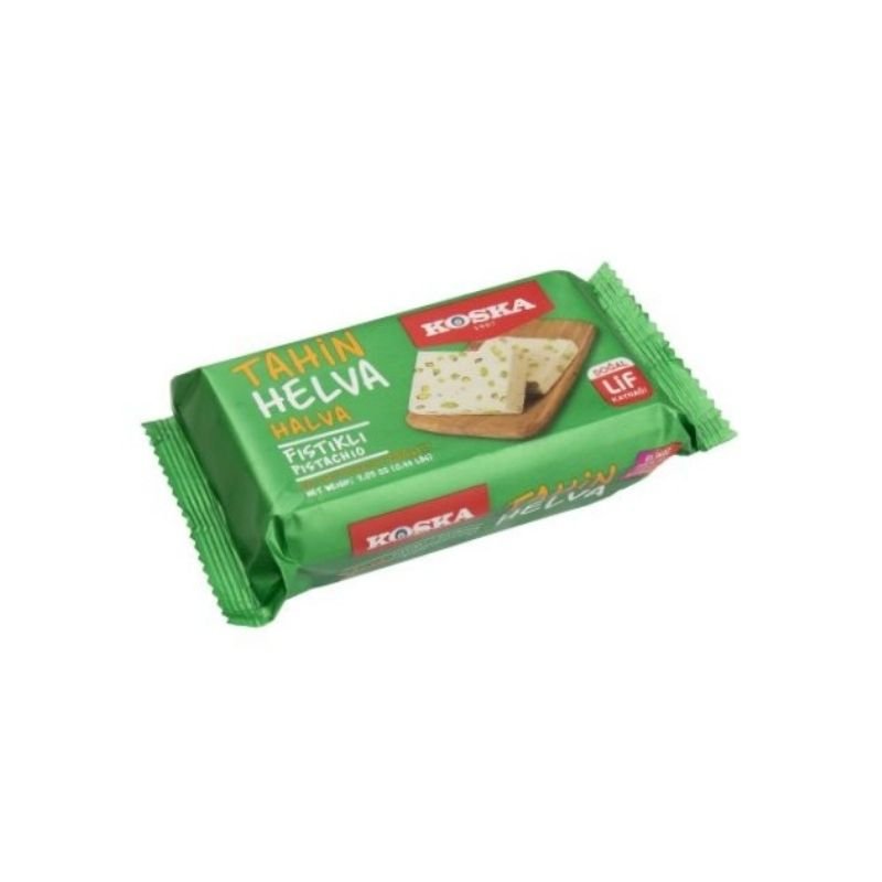 KOSKA HALVA S PISTACIJAMI 200G Turška sladka specialiteta s sezamovo pasto in pistacijami. Sestavi