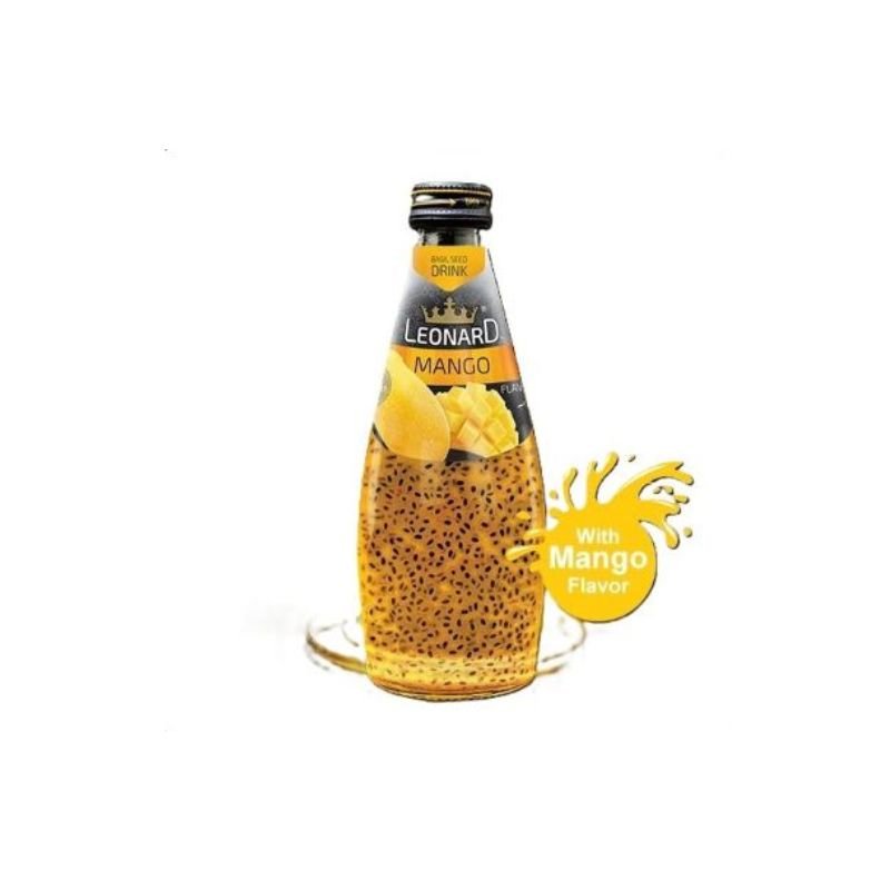 LEONARD BAZILIKA MANGO 300ML Napitek Iz Bazilikovih Semen Z Okusom Mango- Sestavine: sladkor, bazilika, stabilizator (karboksimetil celuloza, konjac, guaran in gelan gumi), citronska kislina, naravna identična aroma mango, askorbinska kislina (vitamin C)