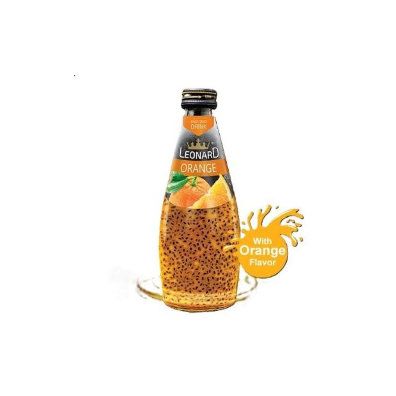 LEONARD BAZILIKA POMARANČA 300ML Napitek Iz Bazilikovih Semen Z Okusom Pomaranče- Sestavine: sladkor, bazilika, stabilizator (karboksimetil celuloza, konjac, guaran in gelan gumi), citronska kislina, naravna identična aroma pomaranča, askorbinska kislina