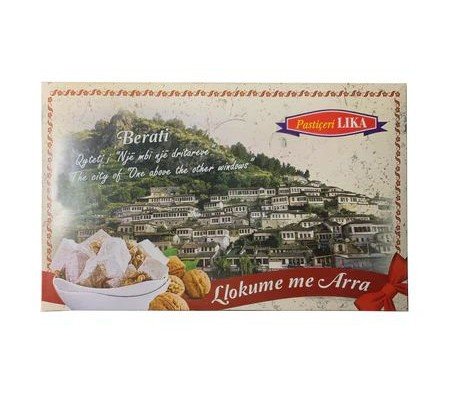 LIKA LOKUM OREH 500G Turški lokum z orehi – Sestavine: sladkor, koruzni škrob, voda, OREŠČKI, citronska kislina E330. Izdelek lahko vsebuje majhne koščke OREHOVE lupine. Neto: 500g. Uporabno najmanj do konca: glejte datum na originalni embalaži. Država