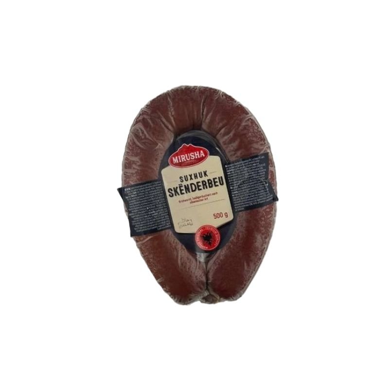 MIRUSHA SKENDERBEU SUXHUK 500G Sestavine Govedina 36%, piščančji izkoščeno meso 34%, pitna voda ML