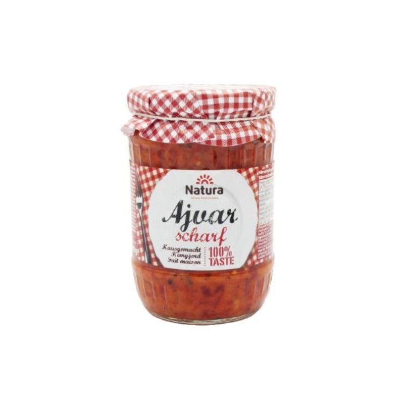 NATURA AJVAR DOMAČI PEKOČI 540G Pasterizirano. Brez konzervansov. Sestavine: paprika (80%), jajčevc