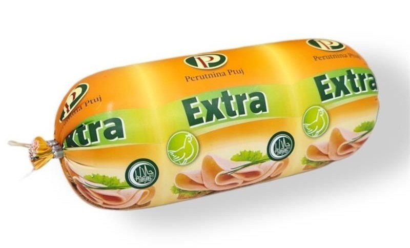 PERUTNINA PTUJ EXTRA 800G PIŠČANČJA SALAMA – Pasteriziran mesni izdelek, narezljiva klobasa iz piš