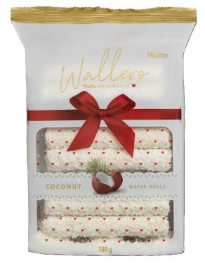 WALTZ WALLERO KOKOS ROLLS 180G WALLERO KOKOS: Napolitanke polnjene s 33% MLEČNE smetane, s finim ob